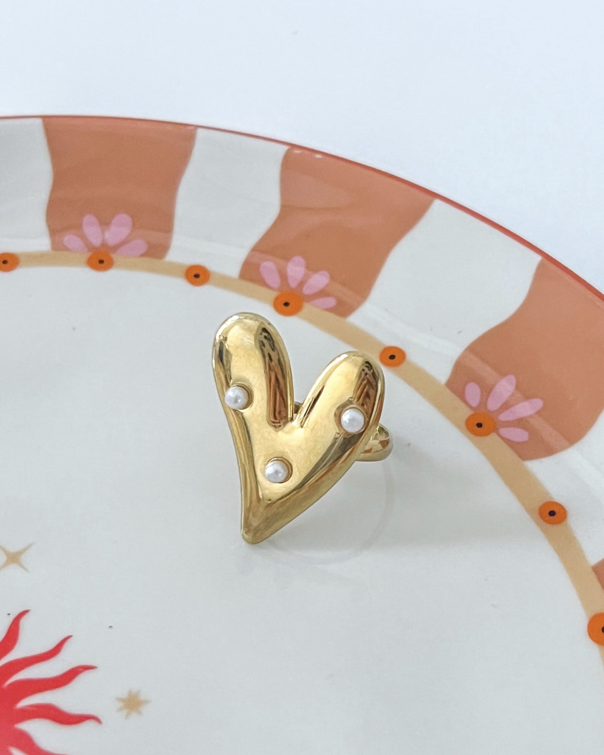 Ring Pearl Heart Goud