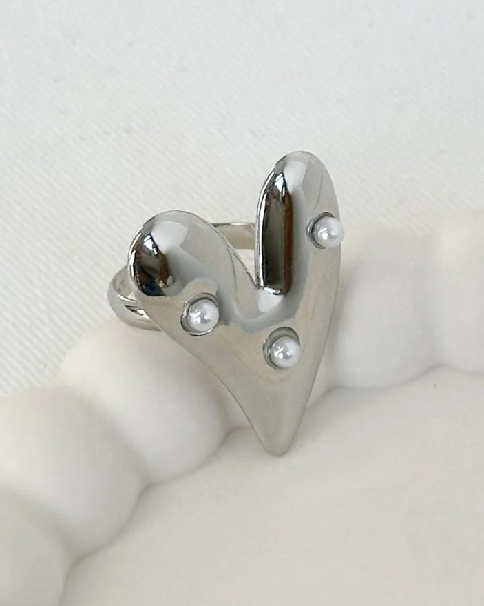 Ring Pearl Heart Zilver